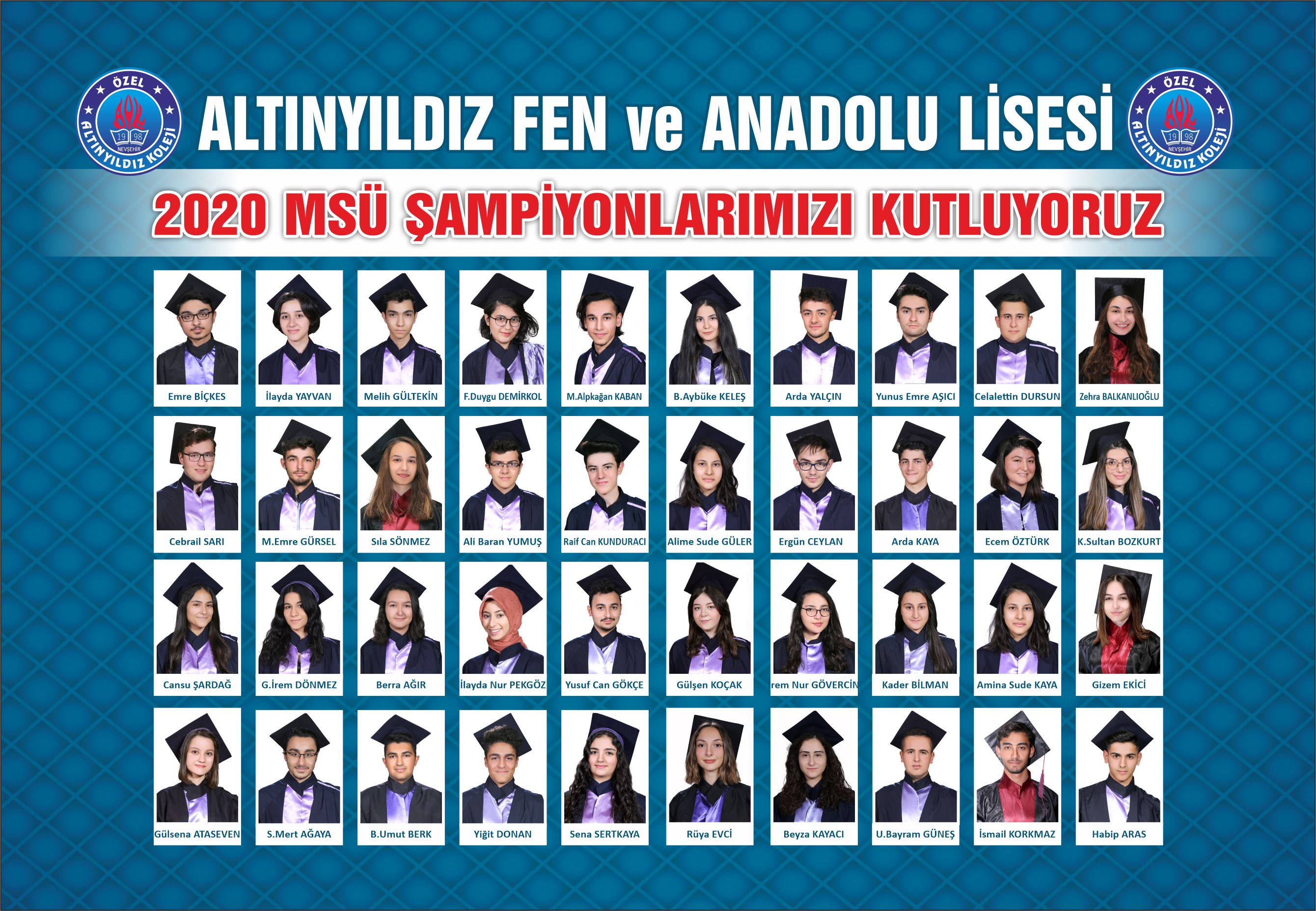 2020 MSÜ’de Altınyıldız Koleji öğrencileri Türkiye dereceleri elde ederek büyük bir başarıya imza atmışlardır. Şu ana kadar 2020 Kara, Deniz, Hava Harp Okulları ile Astsubay MYO Mülakat hakkı kazanan öğrencilerimizden bazıları;