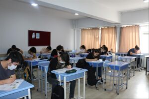 Düzenli olarak yapılan deneme sınavları ile öğrenciler kendilerini üniversite sınavına hazırlaren maske, mesafe ve hijyen kurallarına uyarak, termal kamerayla ateş ölçümü yapılarak ve HES kodu kontrol edilerek sınavlara katılıyorlar.