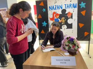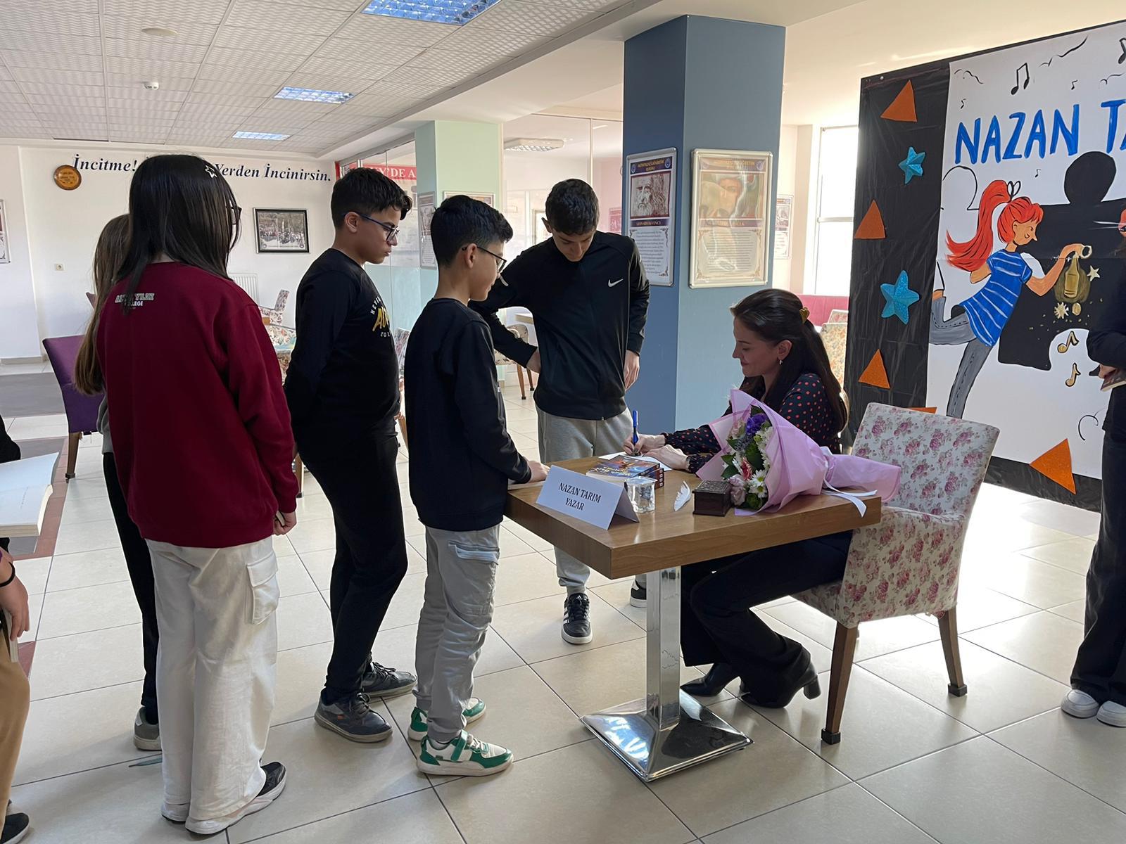 Etkinliğin sonunda öğrenciler, Nazan TarOını imzalatma mutluluğu yaşadı. Keyifli ve öğretici anlara sahne olan bu buluşma, öğrencilerimizin kitaplara ve edebiyata olan ilgisini daha da artırdı.