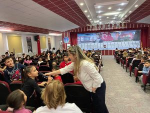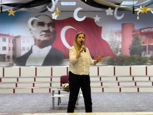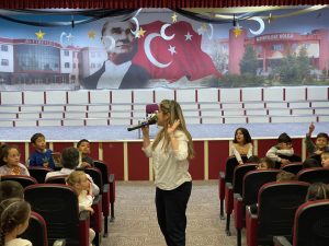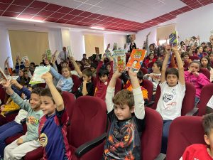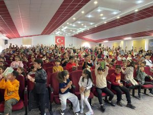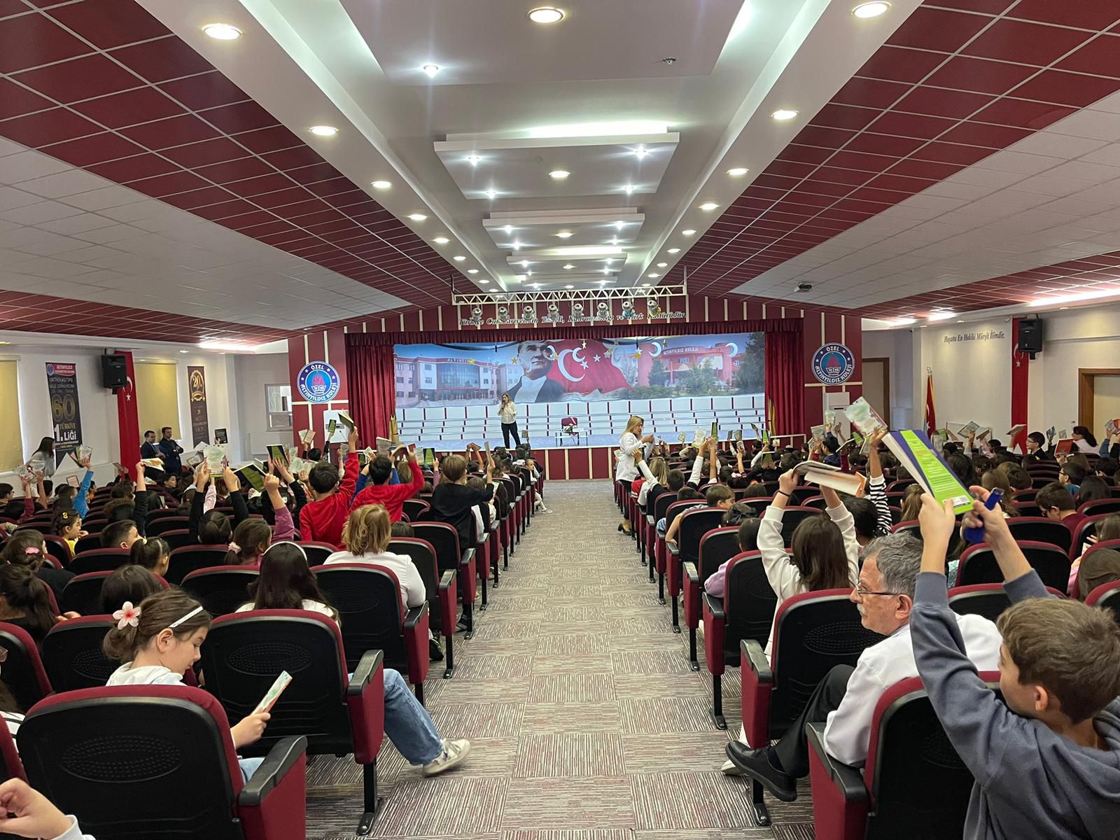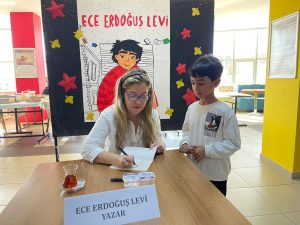 Öğrencilerimizle keyifli bir söyleşi gerçekleştiren Ece Erdoğuş Levi, yazarlık serüveninden, kitaplarının ilham kaynaklarından ve çocuklara hitap eden eserlerinin nasıl ortaya çıktığından bahsetti. Samimi anlatımıyla öğrencilerin ilgisini çeken yazar, okumanın ve yazmanın önemine değindi.