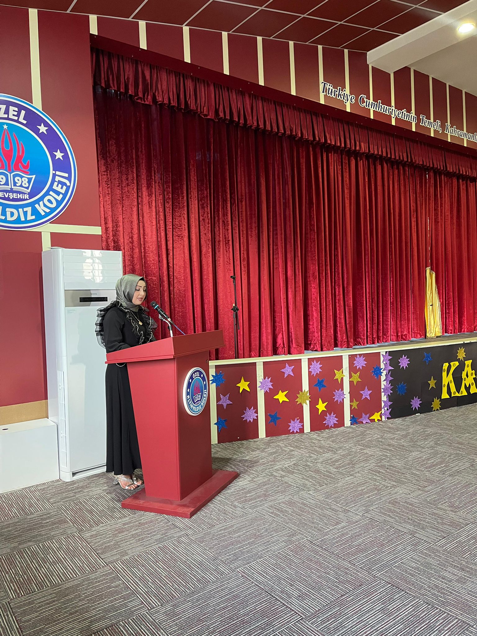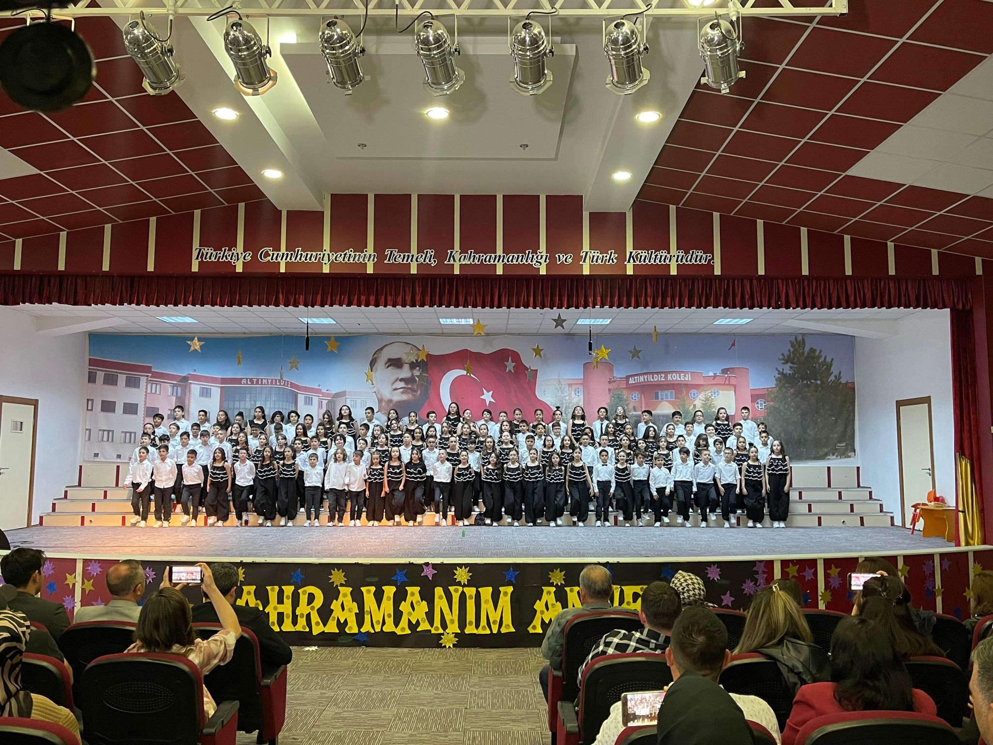 Program sonunda okul Müdürü Sayın Ahmet ÜNAL yaptığı konuşmada programın hazırlanmasında emeği geçen sınıf öğretmenlerimiz ÇETİN BUZLUK, SANİYE İNAN, TUNCAY BAKTI, YEŞİM IŞIKTAŞ, AYŞE ZAĞLANMIŞ, İngilizce Öğretmeni ZEYNEP ÇALIŞKAN, Drama Öğretmeni SEZA DERME, Halk Oyunları Öğretmeni KÜBRA EKİCİ, Resim Öğretmeni TUĞÇE BAŞBUĞ AKBAL, Stem ve Kodlama Öğretmeni CANAN YÜNCÜ, Müzik Öğretmenleri MELİH AKBAL ve ALPEREN DENİZ’e teşekkür etti. Dünyanın en yüce ve kutsal sorumluluğunu sevgi, şefkat ve merhamet duygularıyla yerine getiren tüm annelerimizin ve yüreğinde evlat acısı taşıyan şehit annelerinin Anneler Gününü kutladı.
