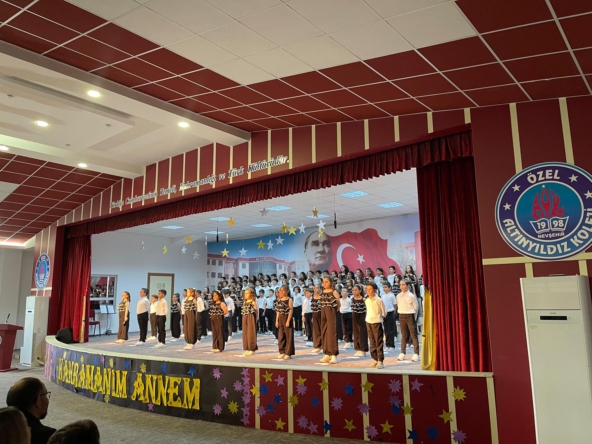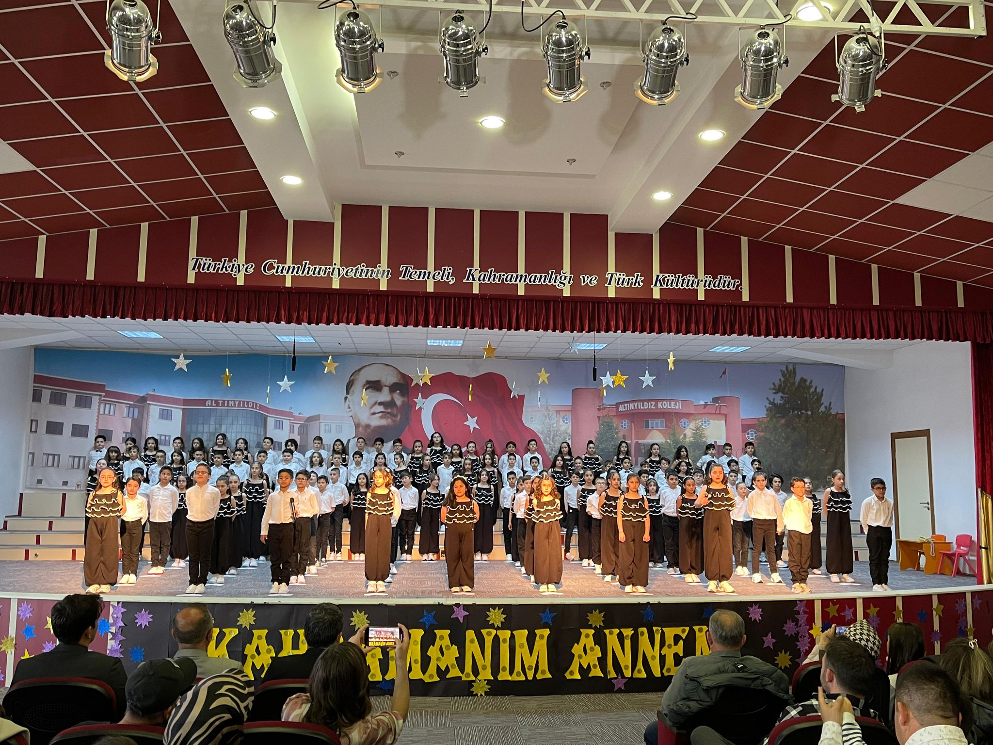 Dünyaya getirdiği evladını; özveri ile büyüten, iyiye, doğruya güzele yönlendirerek hayata hazırlayan, sevgi ve şefkatin tükenmez kaynağı olan annelerimizi bu anlamlı günde yalnız bırakmayan Altınyıldız İlköğretim Kurumu 3.sınıf öğrencileri muhteşem bir programla annelerini ve diğer konukları duygulandırdı. Halk Oyunları gösterisi, Drama, Modern Dans, Oratoryo ve İngilizce-Türkçe şarkılar sunan öğrencilerimiz program sonunda öğretmenlerinin onlara madalya hediye etmesiyle sevinçle programlarını bitirdiler.