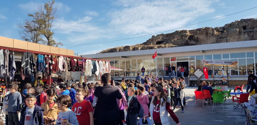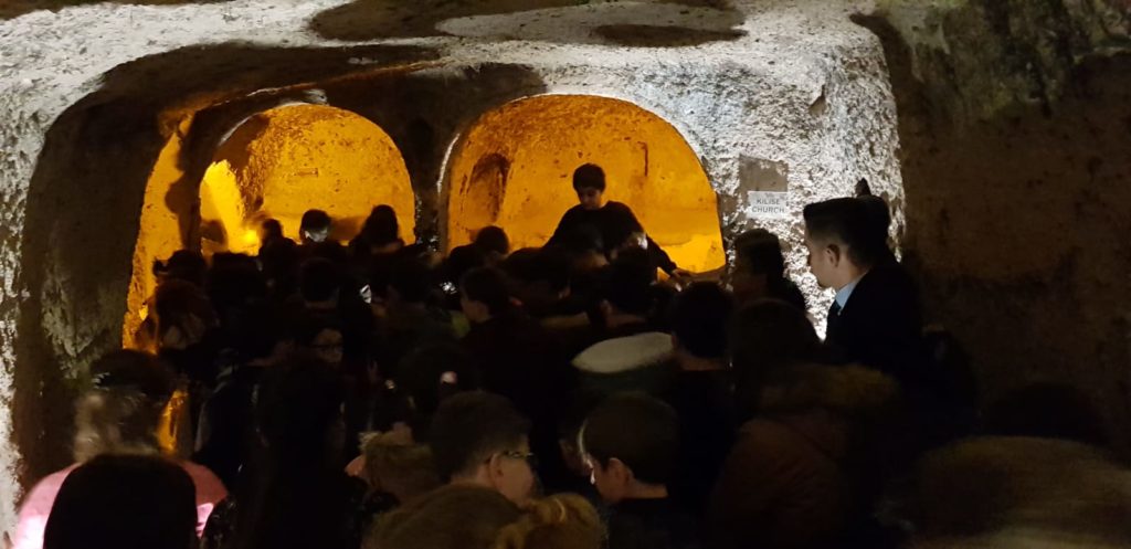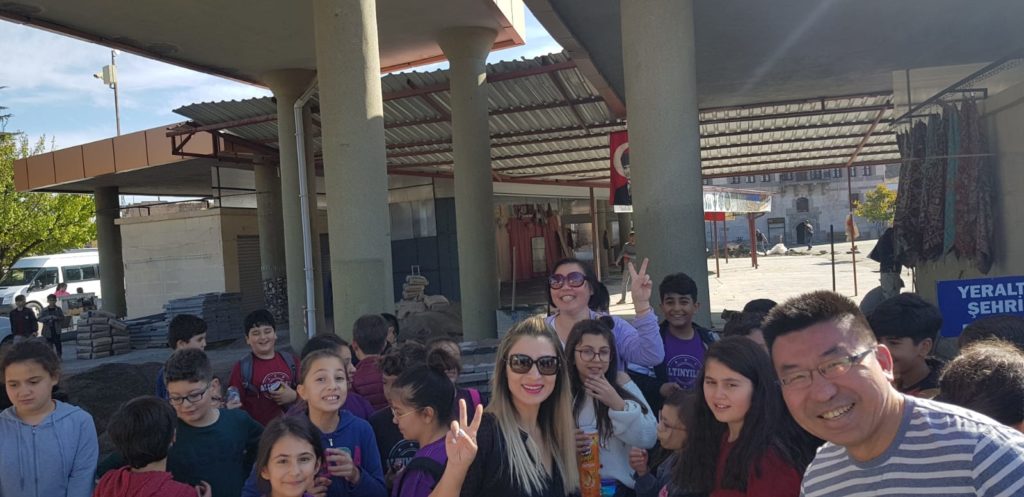 Yeraltı şehrinde ilkçağ uygarlıkları derslerini işleyen öğrencilerimiz yeraltı şehrinden sonra ziyarete gelen turistlerle İngilizce konuşup pratik yaptılar.