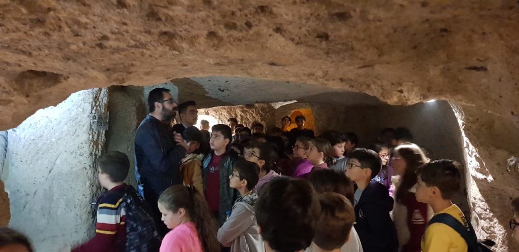 bugünkü Sosyal Bilgiler derslerini yeraltı şehrinde işlediler.