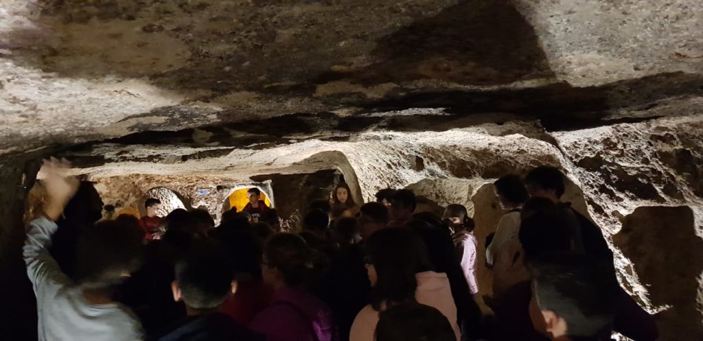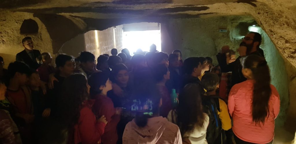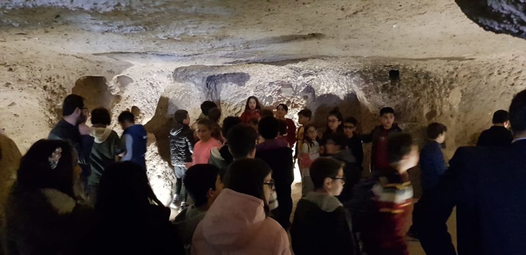 Altınyıldız İlköğretim Kurumu 5.sınıf öğretmen ve öğrencileri sosyal bilgiler ve İngilizce derslerini bugün Kaymaklı yeraltı şehrinde işlediler.