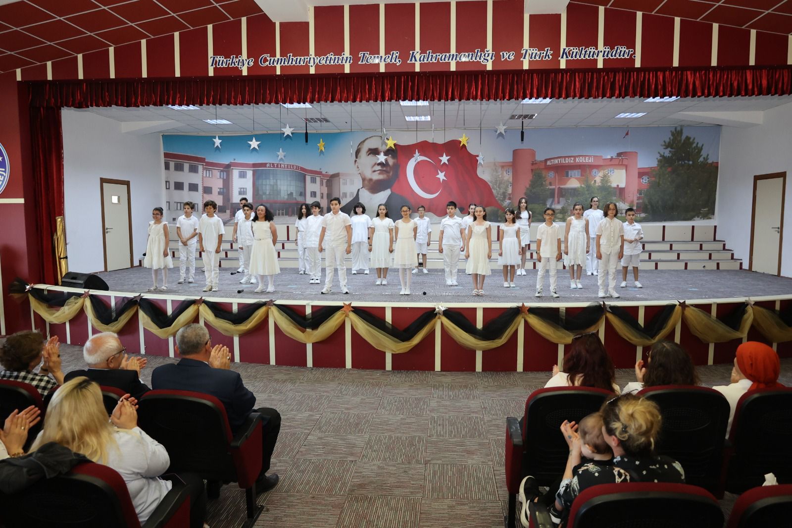 Velilerimizin yoğun katılımıyla sunulan tiyatro gösterisi bütün misafirlerimizden büyük alkış ve övgü aldı. Altınyıldız İlköğretim Kurumu 5.sınıf öğrenci ve İngilizce öğretmenleri tarafından hazırlanan programda ‘Sindirella, Hababam Sınıfı hikâyelerinin İngilizce versiyonları seyircilerimize sergilendi. Ardından ülkelerin kendine özgü dansları, Kapadokya’da bir gün, Ünlü isimler ve hikâyeleri, Modern dans gösterileri verilerek öğrencilerimiz hem tiyatroda oynamanın keyfini yaşarken aynı zamanda İngilizceyi “ANLIYORUM” ve “KONUŞUYORUM” mesajını ilettiler.