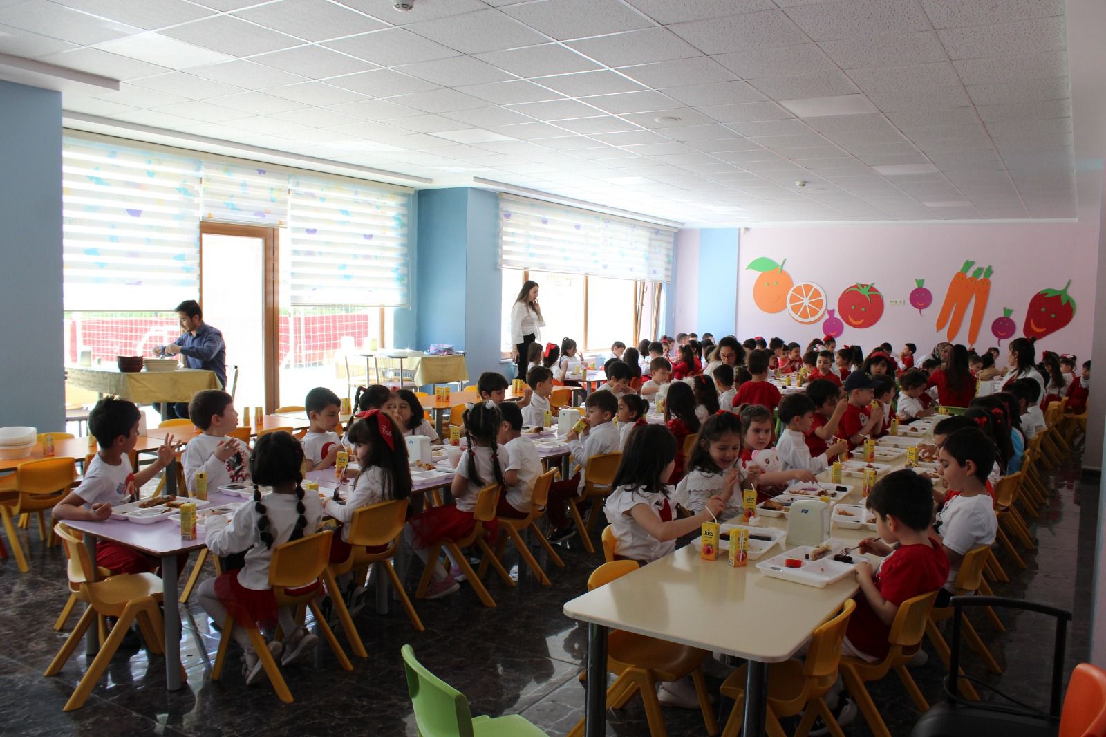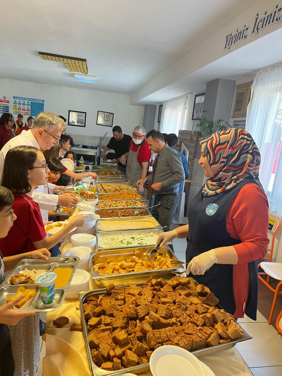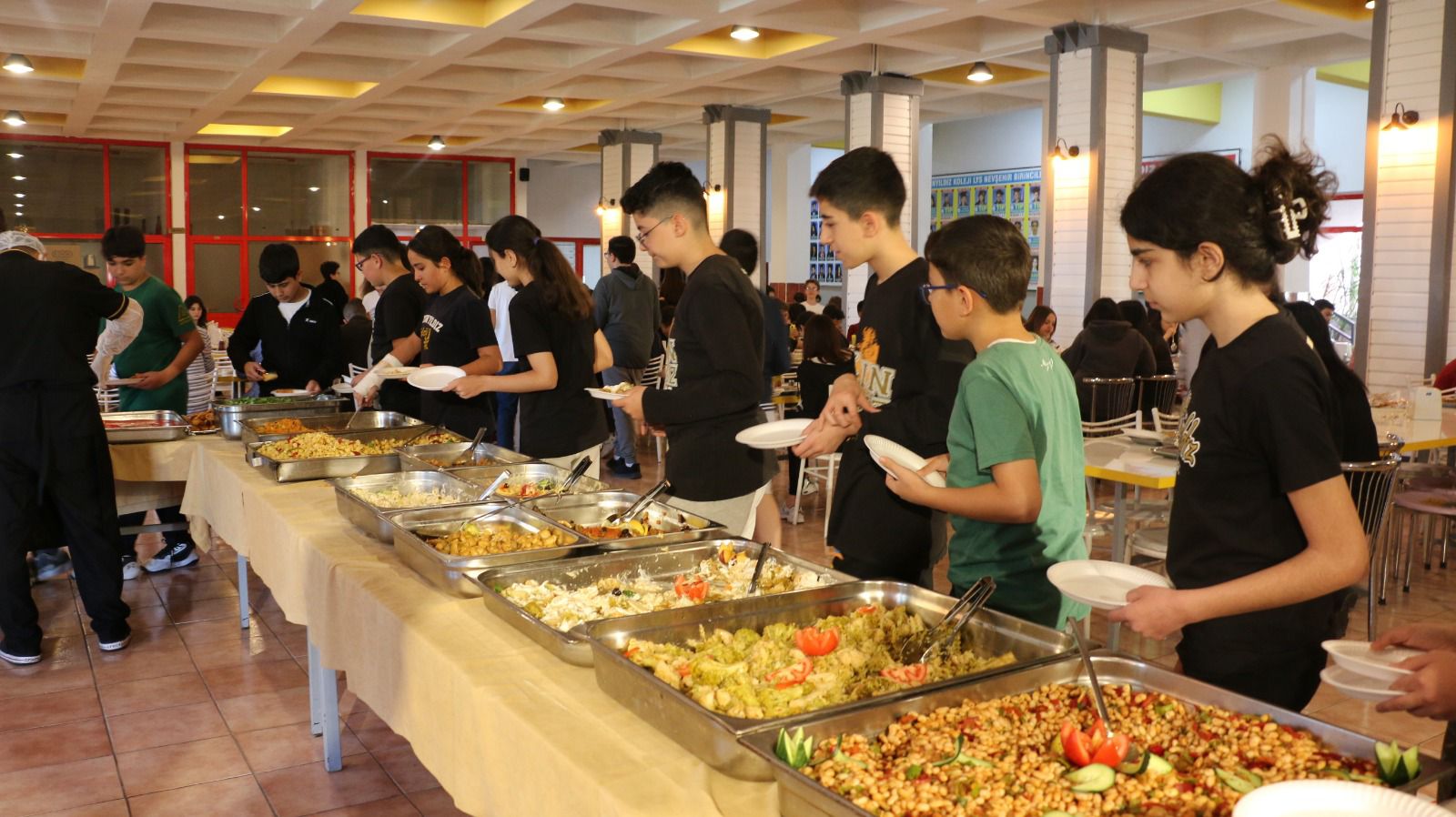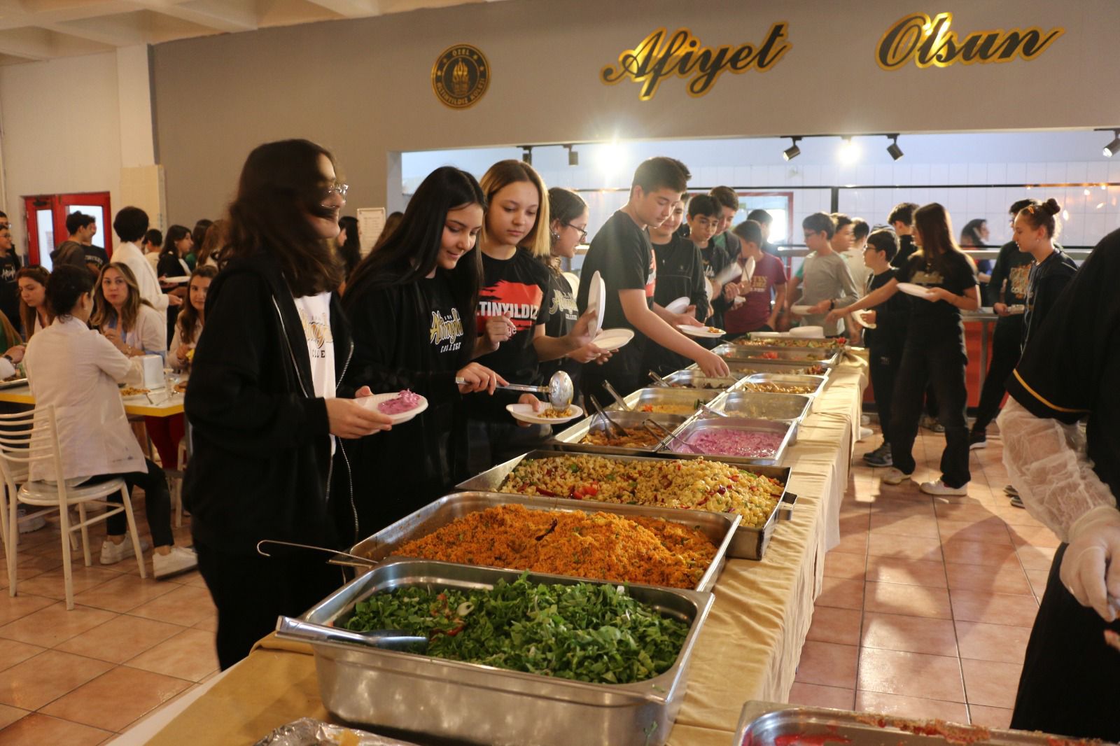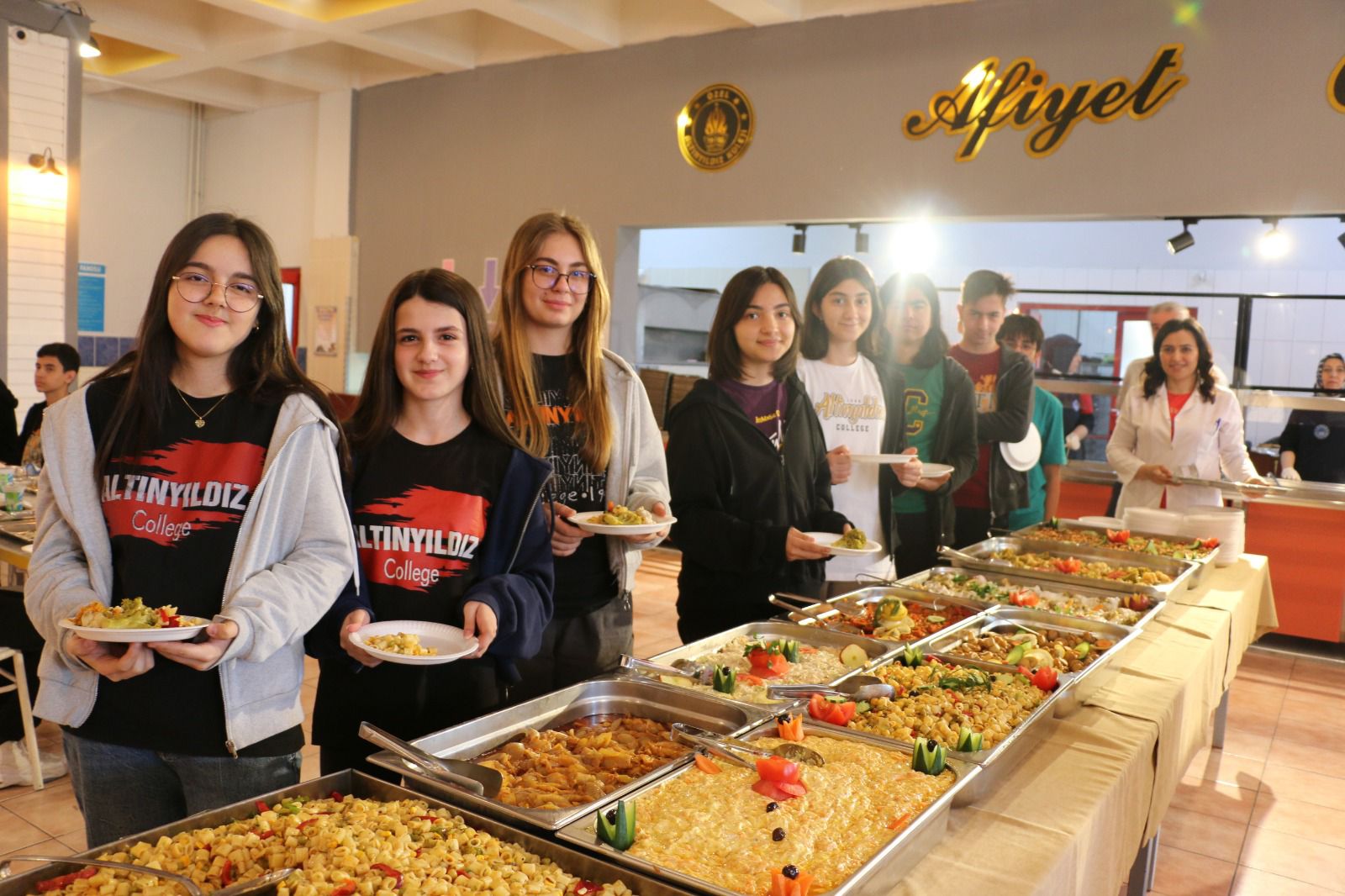 “Sağlıklı Beslenen Sağlıklı Büyür” sloganıyla hazırlanan ve Anaokulu, İlkokul, Ortaokul, Fen Lisesi ile Anadolu Lisesi öğrencilerinin beğenisine sunulan açık büfe menüsünde et ve tavuk ürünleri, çorbalar, mezeler, salatalar, sütlü tatlılar ve içeceklerden oluşan yaklaşık otuz çeşit yiyecek öğrenci ve öğretmenlerden tam not aldı.