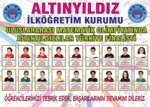 Altınyıldız İlköğretim Kurumu Eğitim yenilikçilik ilkesinden ve öğrencilerin muhakeme etme, araştırma ve sorgulama becerileri ile matematik zekâlarını ön plana çıkarmak ve öğrencilerimizin bilimsel bir etkinliğe katılmalarını sağlayarak yeteneklerini keşfetmelerine yardımcı olup aklın ve bilimin aydınlık dünyasında yol gösterici bir ışık olabilmek amacıyla Uluslararası düzeyde düzenlenen, 130.000’den fazla öğrencinin, 25.000’den fazla okulun katıldığı KANGURU matematik uluslararası olimpiyatlarına katıldılar. Olimpiyat sonucunda 1. ve 2. sınıfların final sınavı olmadığı için üstün başarı kazanan öğrencilerimiz;