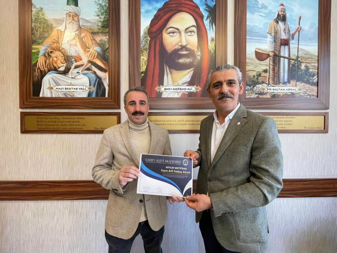 Hacıbektaş Belediye Başkanı Arif Yoldaş Altıok, Garip Dede Dergahını ziyaret edip, Gadev Alevi Akademisi Katılım Sertifikasını Genel Başkan Celal Fırat’tan aldı.