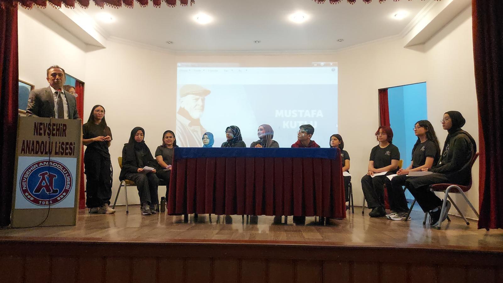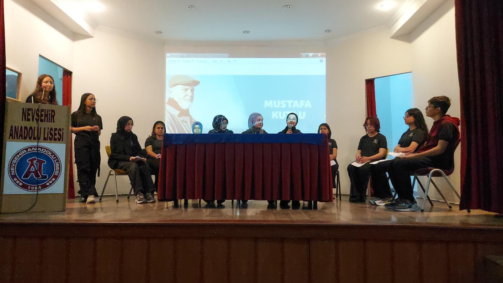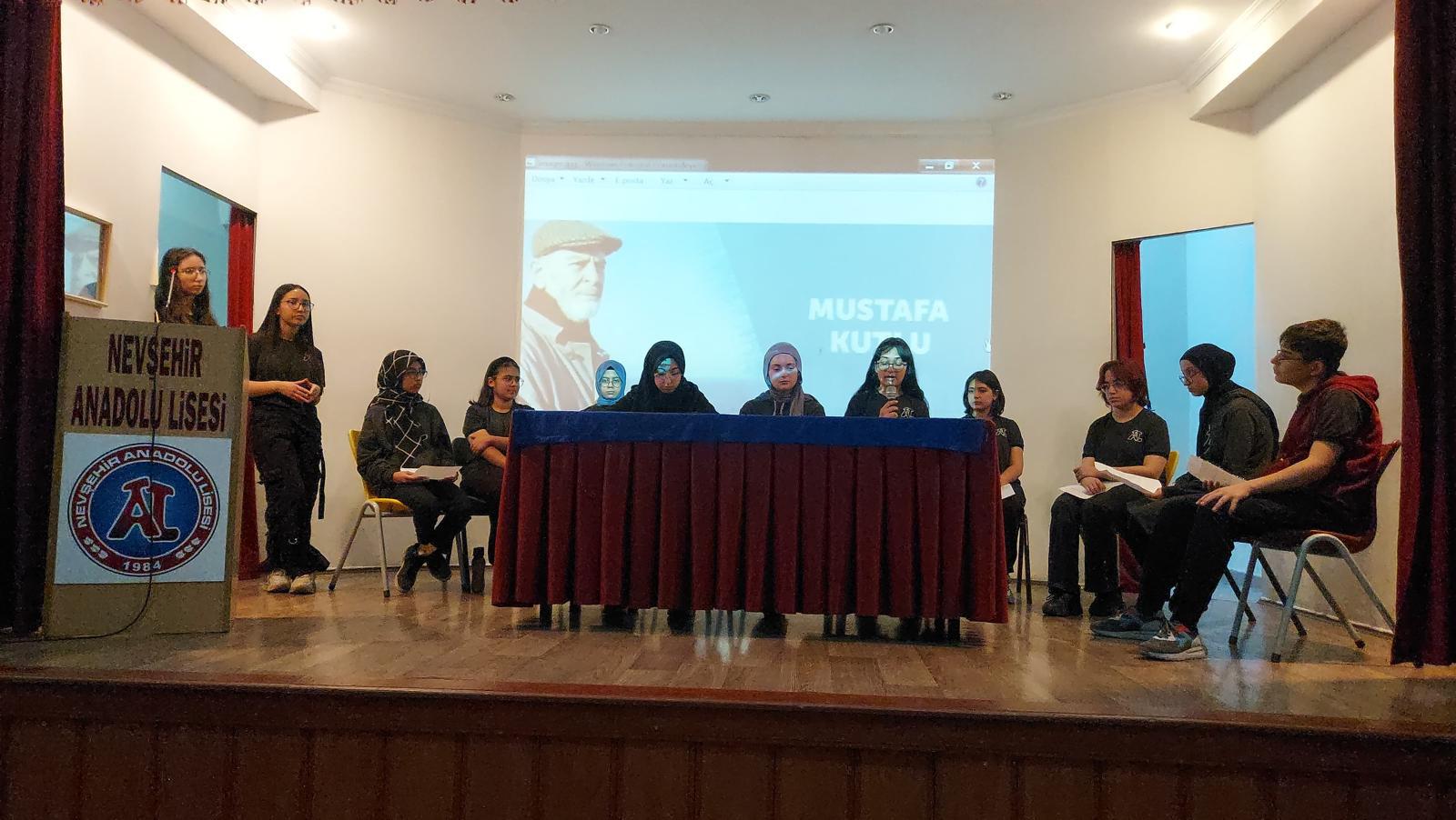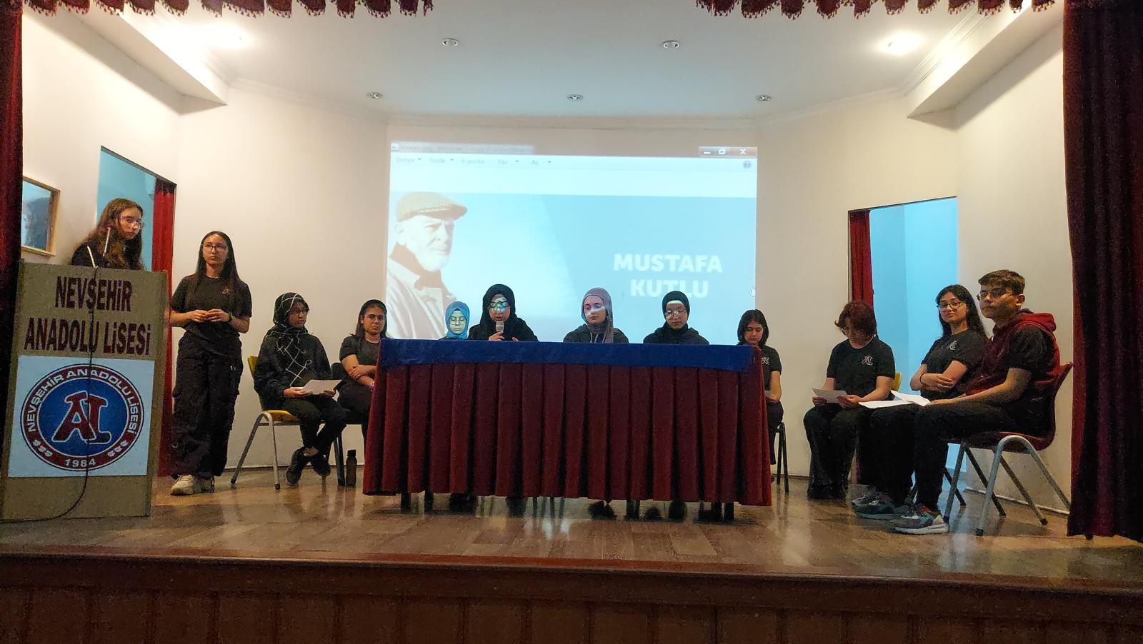 Nevşehir Anadolu Lisesi öğrencileri tarafından Mustafa KUTLU paneli gerçekleştirildi. ”Anadolu Mektebi Yazar Okumaları Programı” kapsamında yapılan panelde okul koordinatörü, Türk Dili ve Edebiyatı öğretmeni Osman Okan GÜL ve Nevşehir Anadolu Lisesi Anadolu Mektebi üyesi öğrenciler “Hikayemizin Yarım Asırlık Yerli Sesi Mustafa KUTLU” başlıklı okul panelinde yazarı ve eserlerini farklı yönleriyle ele aldılar.