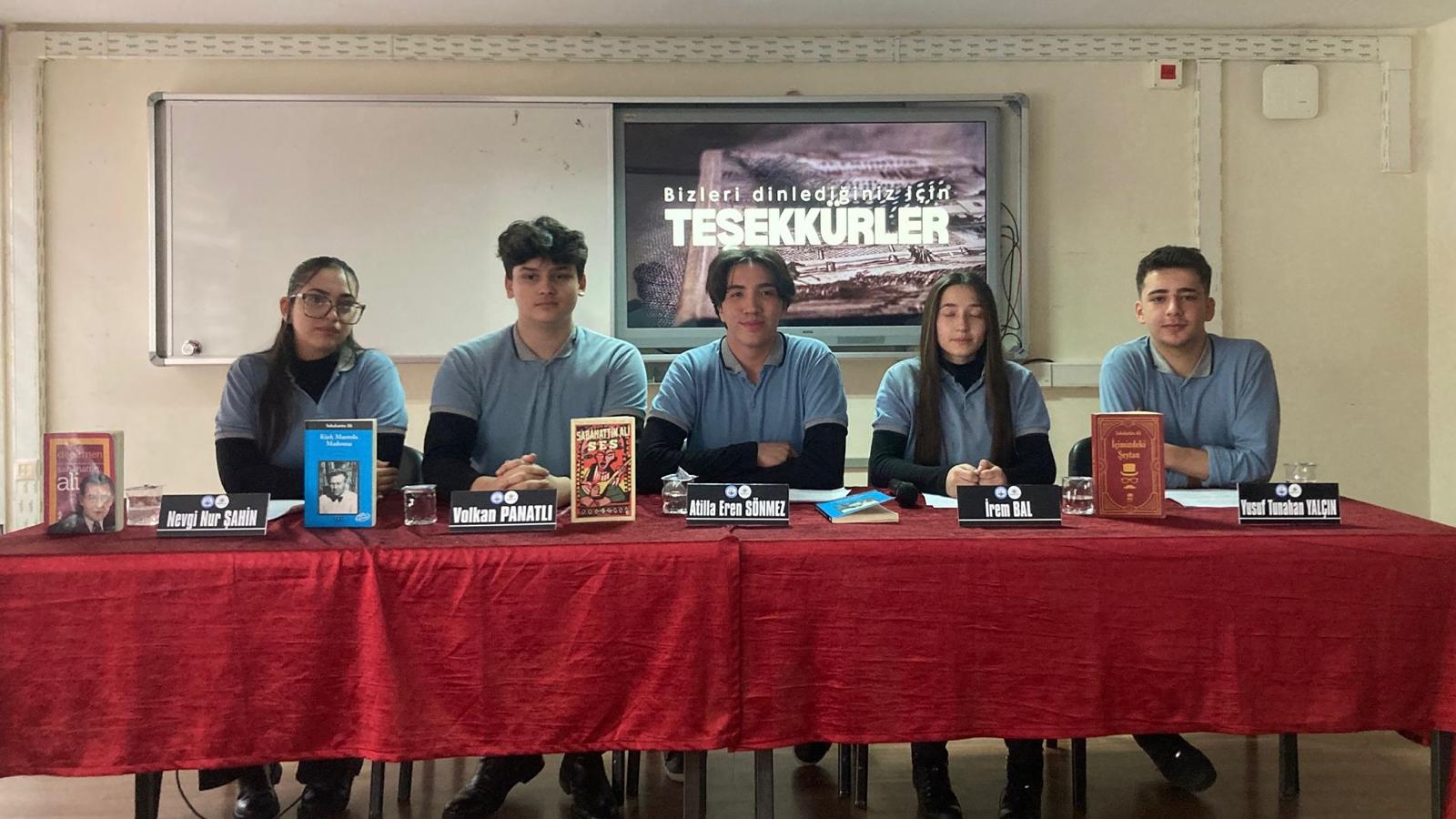 Sabahattin Ali Paneli, İbni-Sina Mesleki ve Teknik Anadolu Lisesi Türk Dili ve Edebiyatı Öğretmenleri Türkan Bozdağ ve Zümrüt Ok’un koordinatörlüğünde düzenlenmiştir. Sunuculuğunu Zümrüt Ok’un yaptığı panelin başkanlığını ise okul öğrencisi Atilla Eren Sönmez gerçekleştirmiştir. Panelde öğrencilerimiz: Volkan Panatlı “Sabahattin Ali’nin Yaşam Öyküsü İle Eserlerinin İlişkisi”; İrem Bal “Sabahattin Ali’nin Eserlerindeki Psikolojik Unsurlar”; Yusuf Tunahan Yalçın “Sabahattin Ali’nin Eserlerinde Doğa, Aşk ve Toplum”; Nevgi Nur Şahin “Sabahattin Ali’nin Edebi Dünyası ve Kitaplarla Olan Bağı”; Atilla Eren Sönmez ”Sabahattin Ali’nin Türk Edebiyatındaki Yeri ve Günümüze Etkisi” başlıklı sunumlarını yaptılar..