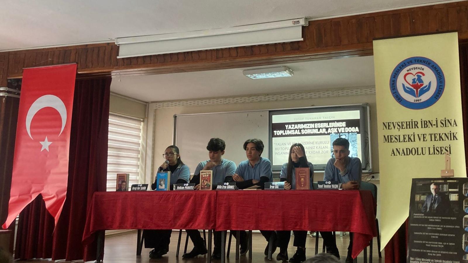 “Anadolu Mektebi Yazar Okumaları” projesi kapsamında İl Millî Eğitim Müdürlüğümüz koordinesinde, Nevşehir Anadolu Mektebi olarak İbni-Sina Mesleki ve Teknik Anadolu Lisemizde yazar ” Sabahattin Ali Paneli-1″ paneli gerçekleştirildi. Nevşehir Anadolu Mektebi olarak İbni-Sina Mesleki ve Teknik Anadolu Lisemizin konferans salonunda yapılan panele; İl Millî Eğitim Müdür Vekilimiz Murat Saltık, Şube Müdürümüz Namık Özçelik, idareciler, öğretmenler ve öğrencilerimiz katıldı.