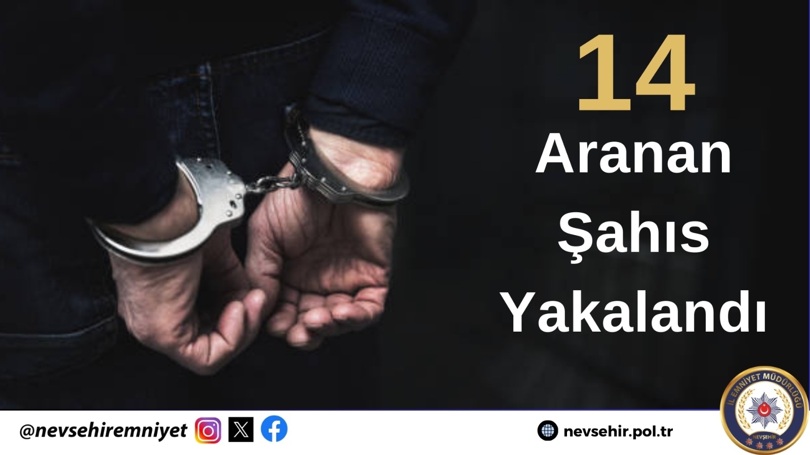 Nevşehir Emniyet Müdürlüğü Ekiplerince son bir hafta içerisinde ilimiz genelinde aranan şahıslara yönelik yapılan çalışmalarda 14 kişi yakalandı.