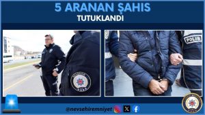 Emniyet Müdürlüğü Ekiplerince ilimiz genelinde aranan şahısların yakalanmasına yönelik yapılan çalışmalarda 5 kişi tutuklandı. 7 yıl 6 ay kesinleşmiş hapis cezası bulunan 1 şahıs, 1 yıl 7 ay kesinleşmiş hapis cezası bulunan 1 şahıs, 1 yıl 1 ay 15 gün kesinleşmiş hapis cezası bulunan 1 şahıs, başta olmak üzere çeşitli suçlardan aranması bulunan 18 şahıs yakalandı. Şahıslardan 13 kişi çıkarılmış oldukları adli mercilerce serbest bırakılırken 5 şahıs tutuklanarak cezaevine teslim edildi.