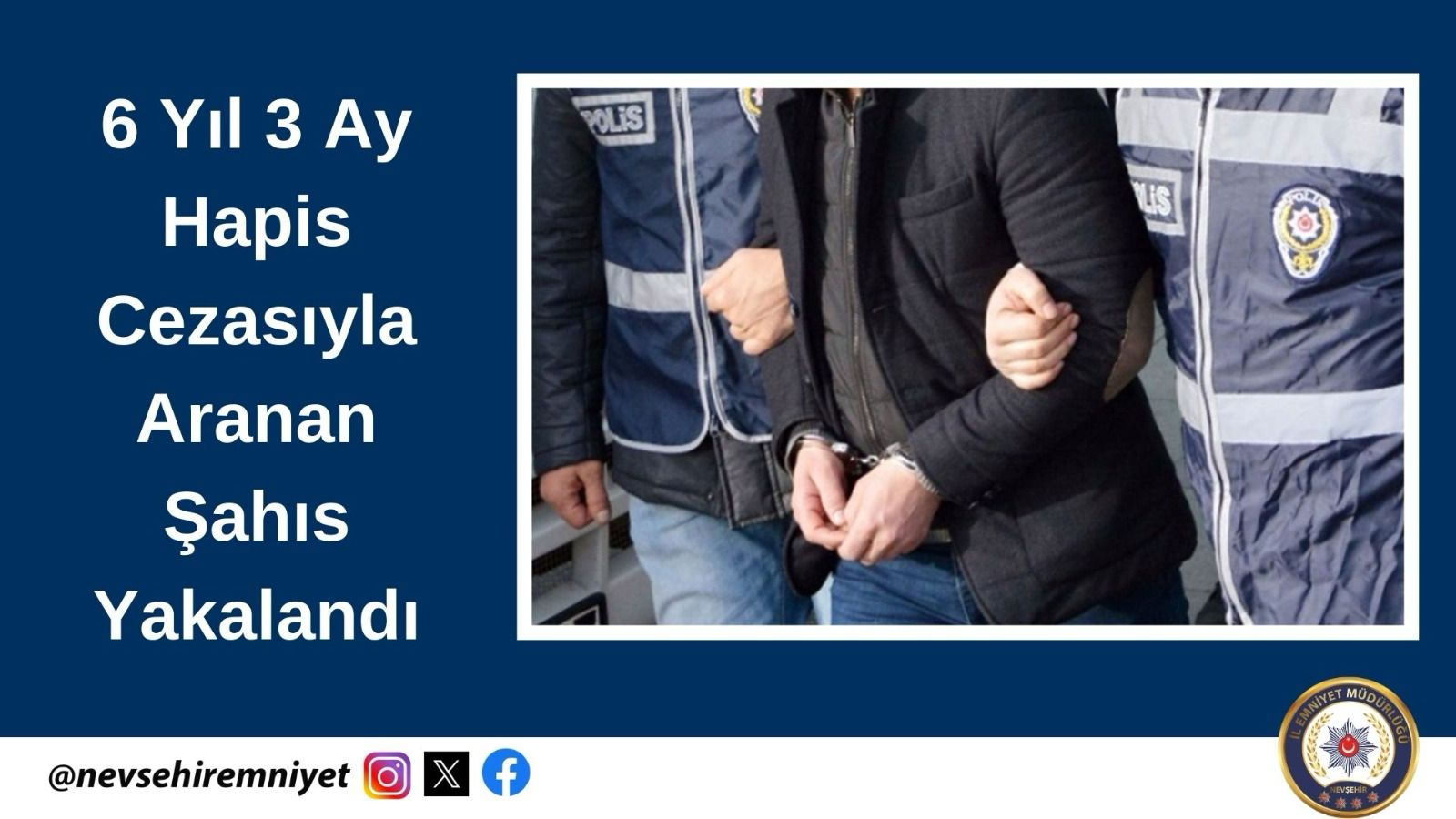 Gülşehir İlçe Emniyet Müdürlüğü ekiplerince aranan şahıs yakalandı. Şahsın yakalanmasına yönelik yapılan çalışmada 6 yıl 3 ay kesinleşmiş hapis cezası bulunan 1 şahıs yakalanırken şahıs hakkında gerekli işlemlere başlanıldı.