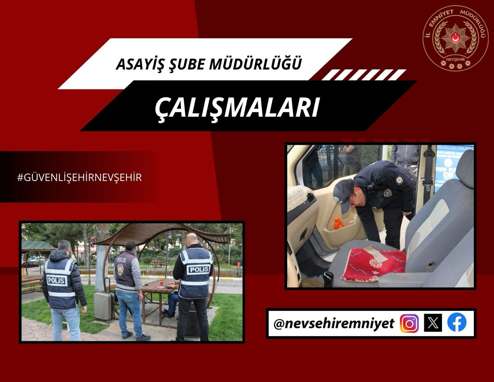 Nevşehir İl Emniyet Müdürlüğüne bağlı Asayiş Şube Müdürlüğü ekiplerince  şüpheli şahıslar ve araçlar üzerinde son bir hafta içerisinde yapılan çalışmalar kamuoyu ile paylaşıldı.