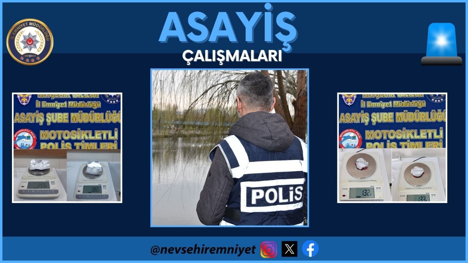 Ekiplerimizce yapılan çalışmalarda 10,38 gr. metamfetamin, 1,10 gr. esrar maddesi, 1 adet bıçak,1 adet kuru sıkı tabanca ve tabancaya ait 27 adet fişek ele geçirilmiştir.