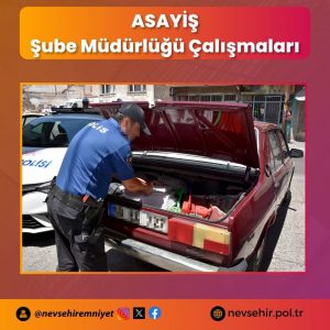 Nevşehir İl Emniyet Müdürlüğü Asayiş Şube Müdürlüğü ekiplerinin çalışmaları aralıksız devam ediyor. Şüpheli şahıslar ve araçlar üzerinde son birhafta içerisinde yapılan çalışmalarda; 1 “Açıktan Hırsızlık”, 2 “Dolandırıcılık”ve 1 “Kasten Yaralama –Tehdit-Hakaret” olaylarında toplam 4 şahsa işlem yapılmış, 1 şahıs tutuklandı. İlimizde kayıp olarak aranan 7 şahıs bulundu. Ekiplerce yapılan çalışmalarda 193 şahıs sorgulanırken 89 araç kontrol edildi. Yapılan denetimlerde 2 şahsa işlem yapıldı. Emniyetin etkin çalışmaları sonucu 1,80 gr. uyuşturucu madde ve 1 adet kurusıkı tabanca ele geçirilerek 11 araca cezai işlem uygulandı.