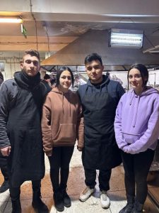 Damla Eroğlu, Yaren Ballı, Murat Özdemir ve Furkan Bozkurt Kahramanmaraş’ın Elbistan İlçesinde Depremzedelerin beslenme ihtiyaçlarını karşılamak için kurulan mutfakta sıcak yemek üretimine destek veriyor.