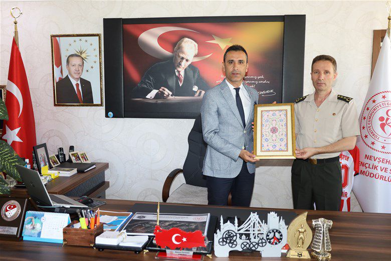 Ankara Kara Kuvvetleri Lojistik Komutanlığına tayini çıkan Nevşehir Askerlik Şubesi Başkanı Albay Mazhar Şahbaz, İl Müdürü Muhsin Özdemir’i makamında ziyaret ederek vedalaştı.
