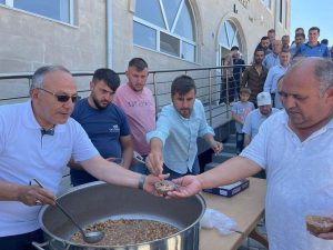 Aşure dağıtımında bizzat görev alan Derinkuyu Belediye Başkanı Bülent Aksoy, “Aşure, bir kapta kardeşlik ikram etmek, bereketi paylaşmaktır. Fadime Mustafa Ekmekci Camiimizde Kıymetli hemşerlerimiz ile hasbihâl ederek, muharrem ayının bereketine aşure ikram ettik” dedi.