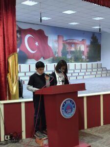 Öğrencilerimiz ‘Bugün Yüreklerimizde sessiz hıçkırıklarla Atatürk’ün huzurundayız. Bütün Türk Ulusu O’nun ruhunu sevgiyle anmakta ,vatan üstündeki yiğit sesi her taraftan işitilmektedir‘ dedi.
