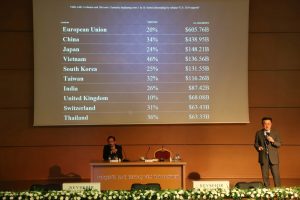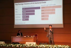 Konferansta “Kore Savaşı’nın Dünya Tarihindeki Yeri” başlıklı İngilizce sunumunda Dr. Jongwoo Han, Kore Yarımadasının kısa tarihini anlatarak Kore Savaşına giden süreçte başta ABD olmak üzere diğer ülkelerin izledikleri politikaları ve bu politikaların Kore halkı ve coğrafyası üzerindeki etkilerine değindi. Dr. Jongwoo Han, uzun zamandır transatlantik liberal düzenin mimarı olan Amerika Birleşik Devletleri’nin giderek artan bir şekilde ‘tek taraflılık’, işlemsel diplomasi ve geleneksel Avrupa ortaklıklarından stratejik geri çekilme ile işaretlenen bir dış politika izlemekte olduğunu belirtti. Dr. Jongwoo Han, dış politikadaki bu değişimin, Washington’ın ittifakı sürdürmekten ziyade büyük güç rekabetini (özellikle Çin ile) öncelediği “Post-Atlantik Dönem”e daha geniş bir geçişin sinyalini verdiğini ifade etti.