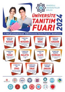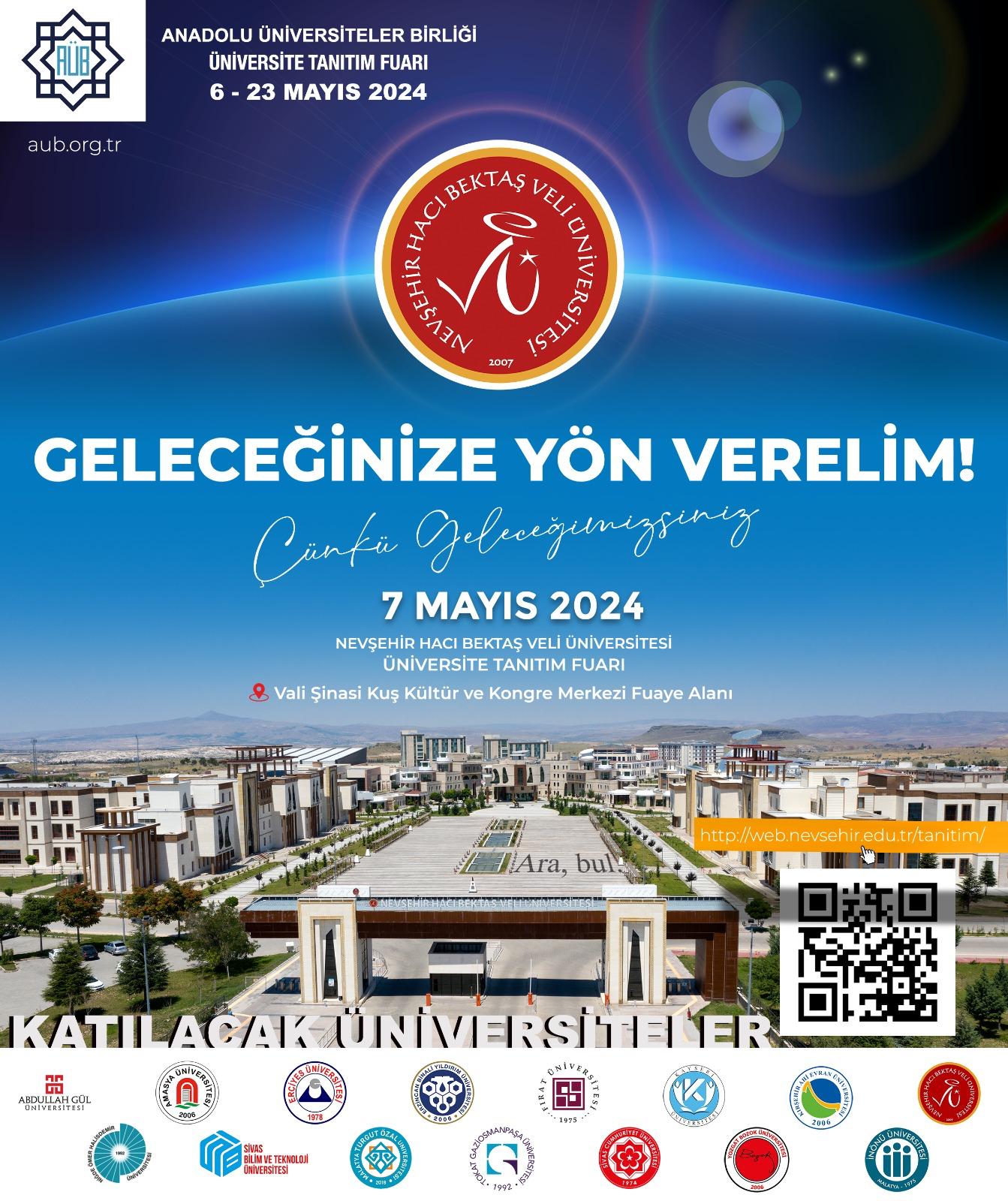 Anadolu Üniversiteler Birliği (AÜB) ‘2024 Üniversite Tanıtım Fuarı’ Nevşehir Hacı Bektaş Veli Üniversitesi (NEVÜ) ev sahipliğinde düzenleniyor.