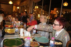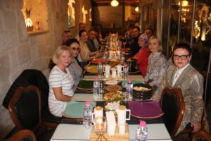 Kapadokya Bölge Temsil Kurulu Başkanı Talip Aldemir’in organize ettiği akşam yemeğine Göreme Belediye Başkanı Ömer Eren, Nevşehir İl Kültür ve Turizm Müdürü Cengiz Ekici, TURSAB Kapadokya BTK Başkanı Talip Aldemir, SABTOUR yetkilileri Refail Ekberov ile Nezih Hacıalioğlu, Turizmci İsmail Sucu ve 17 Rus Acenta yetkilisi katıldı.