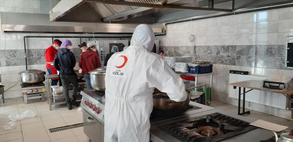 Vatandaşlara hizmet eden kat görevlileri, güvenlik görevlileri ve polisler ile birlikte toplam 300 kişiye Türk Kızılayı Nevşehir Şubesi tarafından günde üç öğün yemek veriliyor.
