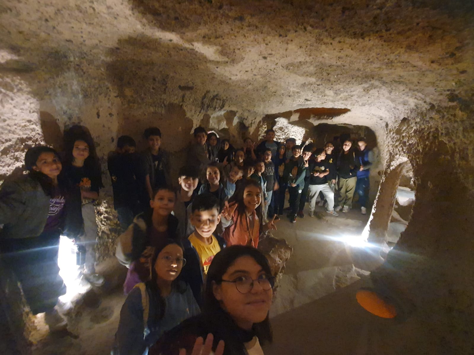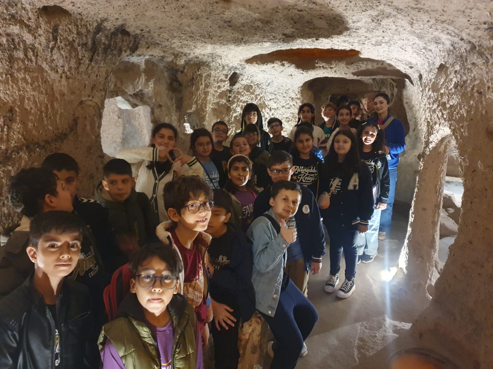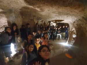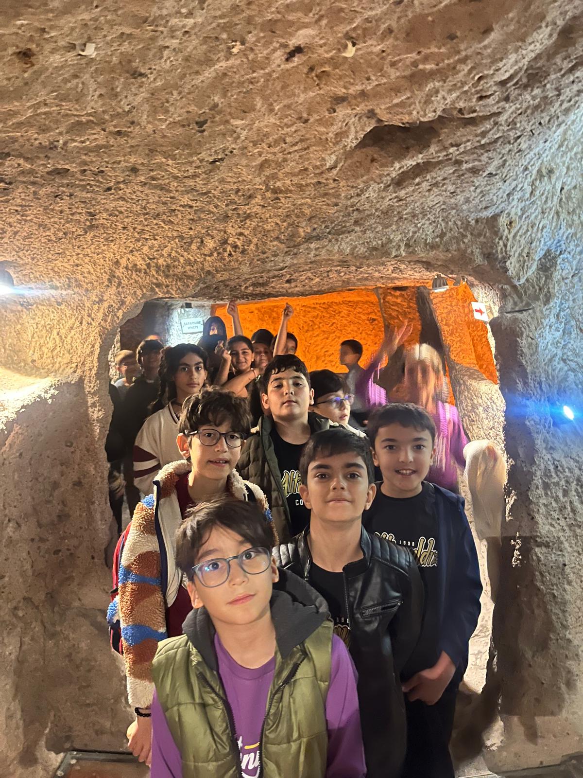 Kaymaklı Yeraltı Şehri’nin tarihî yapısını inceleyen öğrencilerimiz, Hititlerin mimari dehasına ve yaşam tarzına dair önemli bilgilere erişme fırsatı buldular. Bu eşsiz gezi sayesinde sadece ders kitaplarındaki bilgileri görmekle kalmayıp, tarihe adım atmış gibi hissettiler. Rehber eşliğinde yer altındaki tünelleri keşfeden öğrenciler, Hititlerin savunma stratejilerini ve günlük yaşamlarını daha yakından tanıdılar.