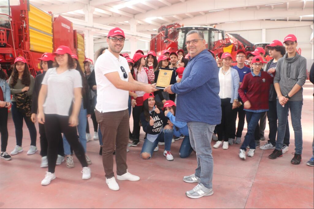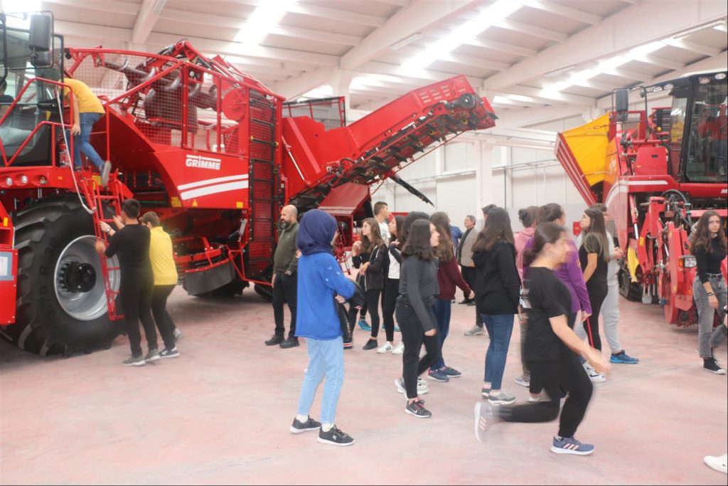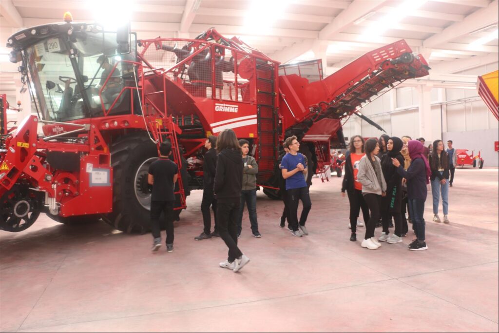 Patates ve pancar tarım makinalarının Almanya’da imalatı ve üretimi, Türkiye’de satışı ile ilgili bilgi vermişlerdir Grimme Turkey çalışanları öğrencilerimize hatıra olarak şapka dağıtıp, ikramlarda bulundular.