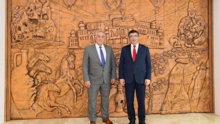 Nevşehir’in Göreme Belde Belediye Başkanı Ömer Eren, Nevşehir Hacı Bektaş Veli Üniversitesi (NEVÜ) Rektörü Prof. Dr. Semih Aktekin’i ziyaret etti.
