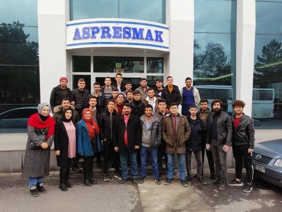 Gezinin ikinci adımı Nevşehir de ilk CNC Plazma Kesim ve Büküm Makinalarını bünyesinde bulunduran ASPRESMAK Metal ve Plastik Sanayi Tic. Ltd. Şti. oldu. Gezi kapsamında ilk olarak öğrencilere işletme yetkilileri tarafından fabrikanın kuruluşu, gelişimi, üretim ve ürün pazarları hakkında bilgi verildi.