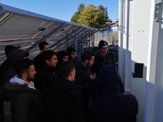 2018 yılında devreye alınan, 4166 paneliyle toplam kurulu gücü 1 MW olan Güneş Enerji Santralinde ilk olarak santral teknik ekibi tarafından enerjinin üretim, iletim ve dağıtım süreçleri, fotovoltaik paneller, güneş pilleri ve çalışma sistemleri, konstrüksiyon uygulamaları, santralin kurulumu, bakım-onarım işlemleri, yıllık üretim verileri, şalt sahalarında oluşabilecek arızalar ve koruma önlemleri gibi farklı konularda bilgilendirmeler yapıldı.
