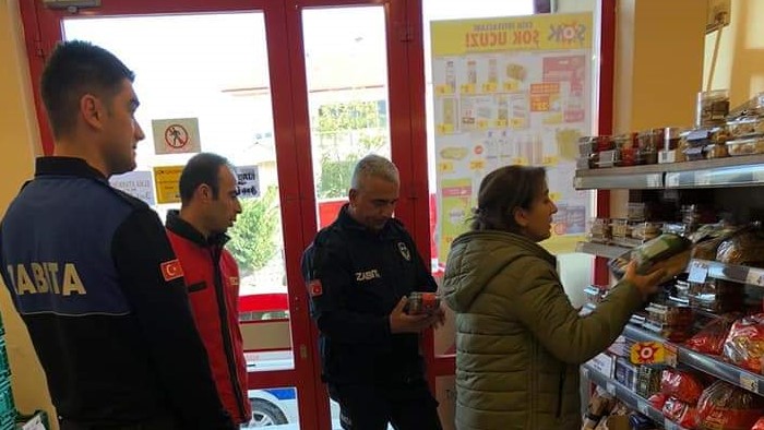 Ekipler, raflardan örnek ürünler alarak fiyat ve gramajlarını, son kullanma tarihlerini kontrol etti.