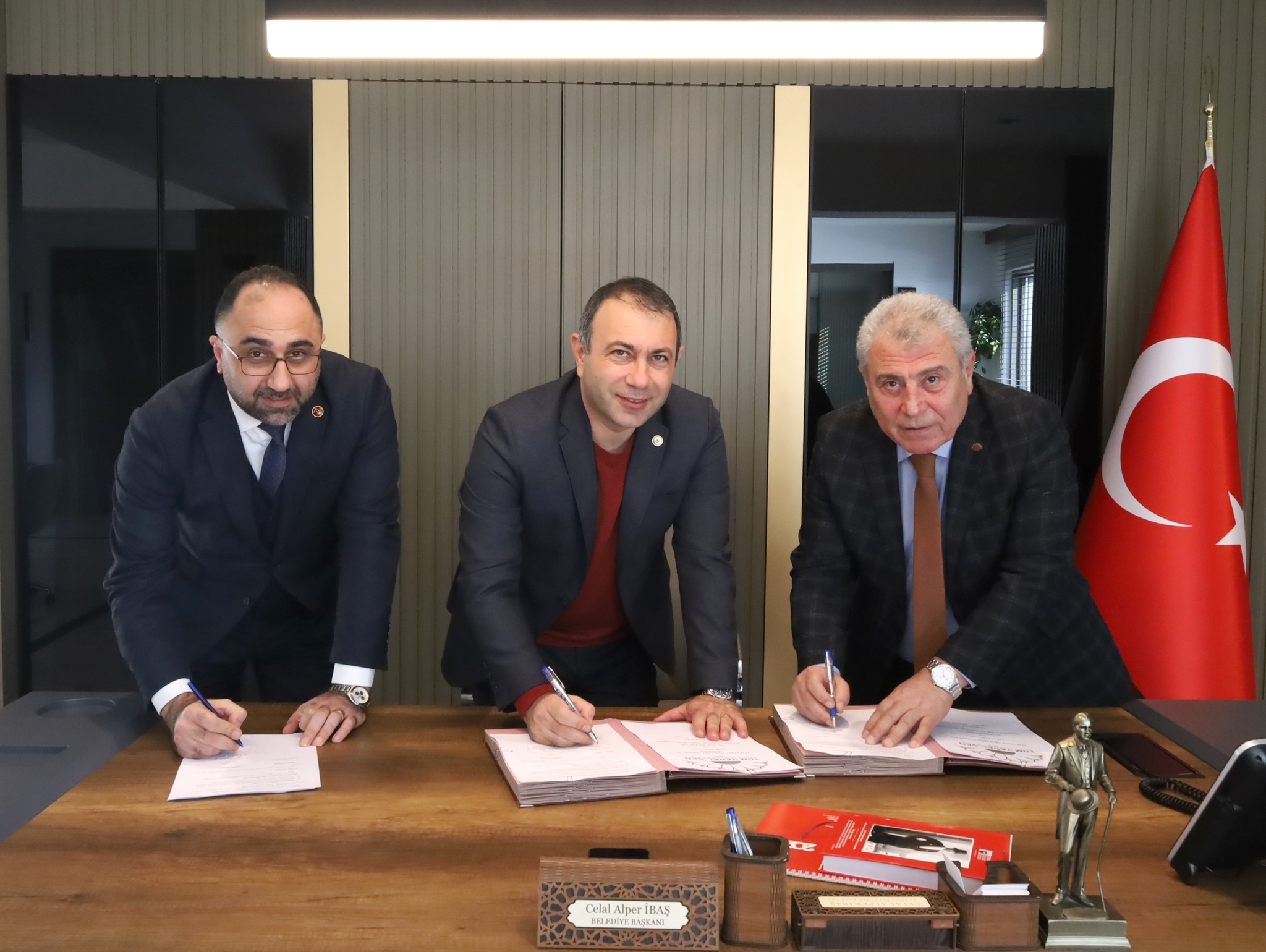 Sosyal denge sözleşmesi imza töreni Belediye Başkanı Celal Alper İbaş’ın makam odasında gerçekleştirilirken, törene Başkan İbaş’ın yanı sıra Tüm Yerel-Sen Genel Başkanı Arap Mucur ve Avanos Belediyesi Tüm Yerel-Sen işyeri temsilcisi Engin Öztürk katıldı.
