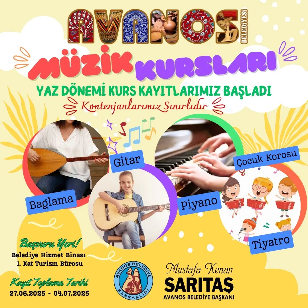 Yaz kursunda; bağlama, gitar, piyano, çocuk korosu ve çocuk tiyatrosu kursları verilecek.