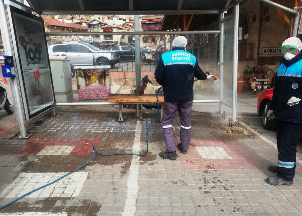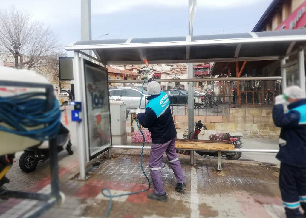 Okullarda ve Otobüs duraklarında dezenfeksiyon çalışmaları yapan Avanos Belediyesi Temizlik ve Çevre Koruma Müdürlüğü ekipleri çalışmalarını sürdürüyor.