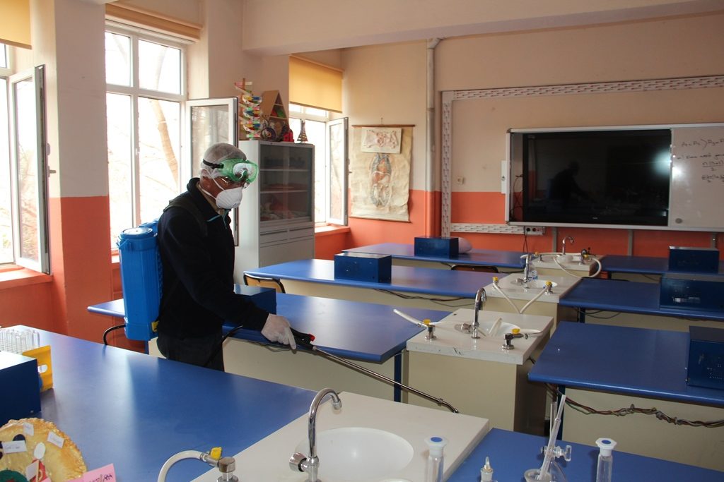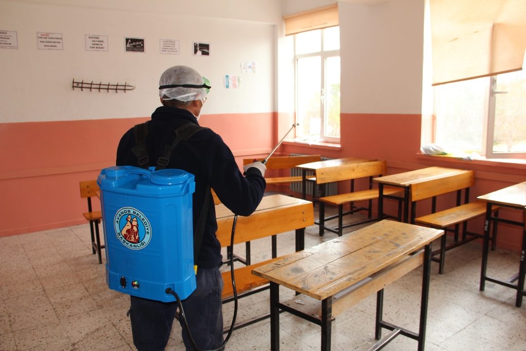 Öğrencilerin sağlıklı ve hijyenik bir ortamda ders yapmaları amacıyla ilçe genelindeki okulların ortak kullanım alanlarında dezenfekte çalışmasının sürdüğünü belirten Avanos Belediyesi Temizlik ve Çevre Koruma Müdürlüğü ekipleri, koronavirüsü salgınına karşı alınan önlemler kapsamında, olası viral enfeksiyon ve salgın hastalıklara karşı önlem amaçlı ilaçlama çalışmalarının yapıldığını söyledi.