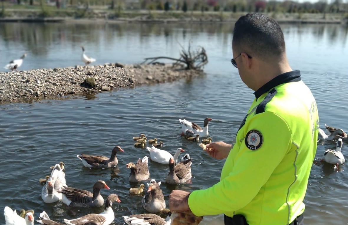 Kızılırmak’ta aç kalan Kaz’ları polis besledi