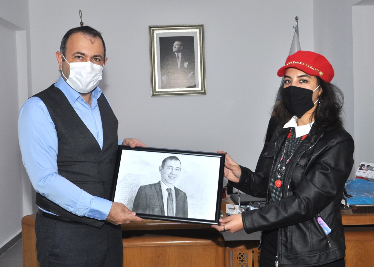 Ressam Gülhan Kartal Başkan İBAŞ’a portresini hediye etti