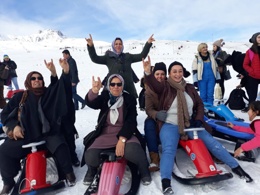 MHP Avanos Kadın Kolları Başkanı Ayşe Azizoğlu ve yönetim kurulu üyelerinin yanı sıra çok sayıda Asena’nın katıldığı etkinlikte Kayseri Erciyes kayak merkezinde katılımcılar doyasıya eğlendi, stres attı.