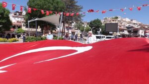 Çelenk sunma töreni sonrasında 19 Mayıs Atatürk’ü Anma Gençlik ve Spor Bayramı etkinlikleri kapsamında Avanos çarşı merkezinde dev Türk Bayrağı açıldı. Sınırlı sayıda katılımcının bulunduğu törende Kaymakam Olgun Öner katılımcıların bayramını kutlamasının ardından çekilen hatıra fotoğrafları ile tören son buldu.