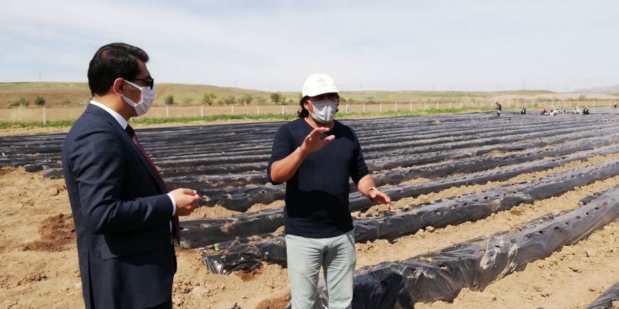 Proje kapsamında örtü altı çilek fideleri dikildi