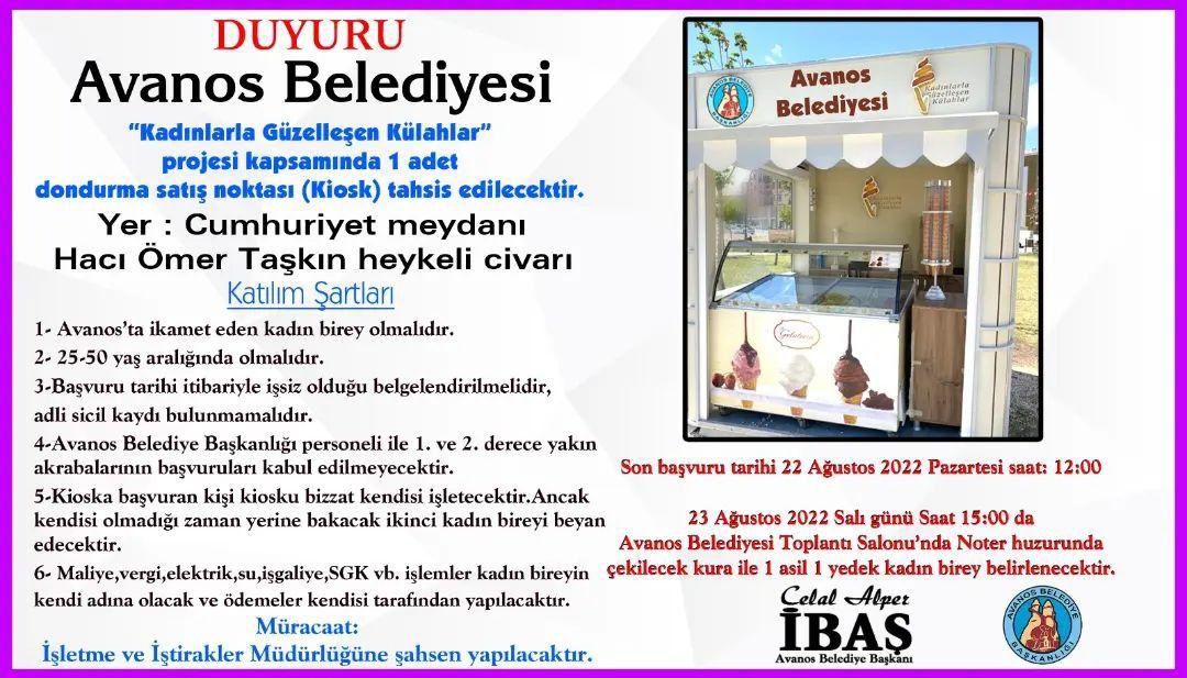 “Kadınlarla Güzelleşen Külahlar” projesi kapsamında 1 adet satış noktası (Kiosk) tahsis edilecek.