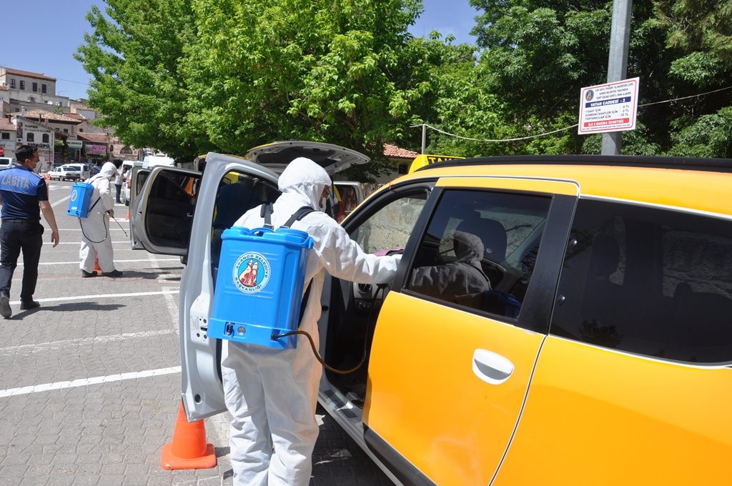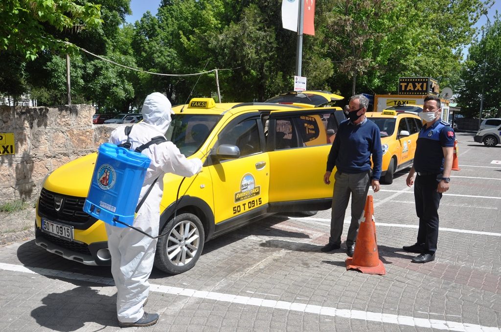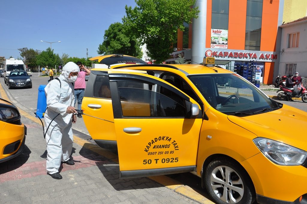 İçişleri Bakanlığı’nın yeni yayınladığı sağlık bilgisi tedbirleri kapsamında Avanos’taki taksi durakları Avanos Belediyesi ekiplerince dezenfekte edildi.