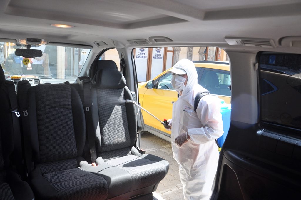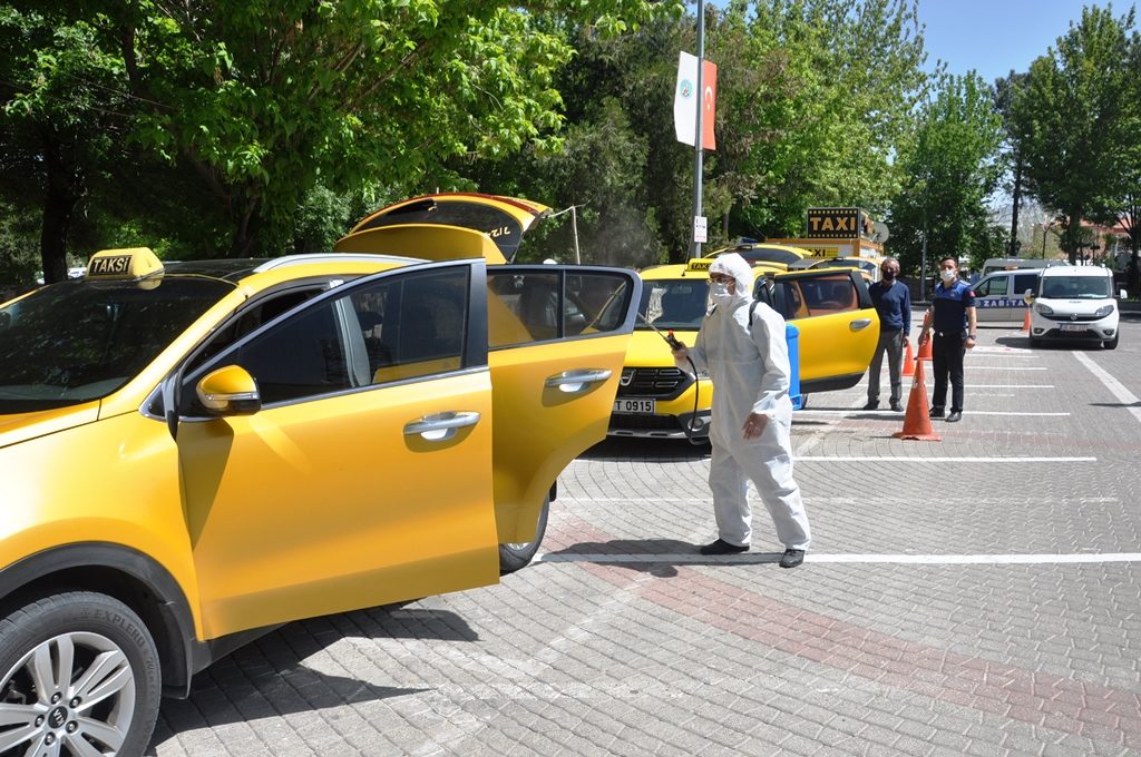 İçişleri Bakanlığının ‘ticari taksi’ genelgesi sonrası ilçe genelinde taksi durakları ve taksiler Temizlik ve Çevre Koruma Müdürlüğüne bağlı ekipler tarafından dezenfeksiyon edildi.