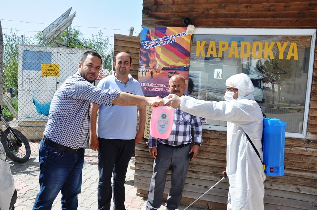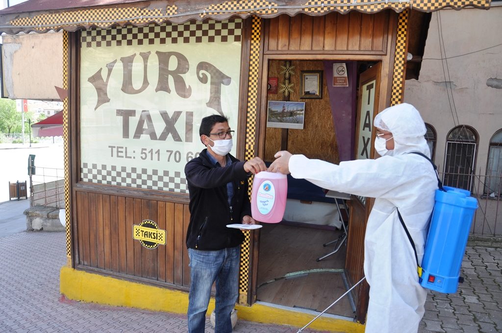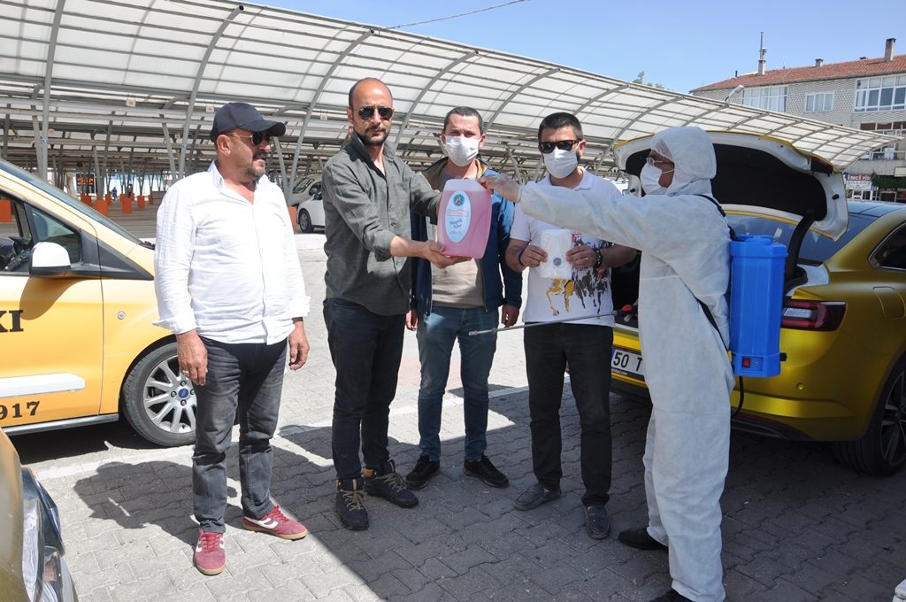 Aynı zamanda Avanos Belediyesi olarak taksici esnafa dezenfektan ve maske hediye edildi.