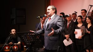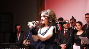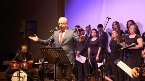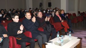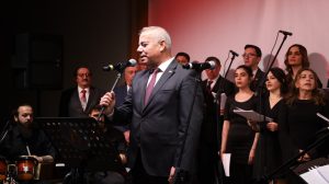 Avanos Belediye Başkanı Celal Alper İbaş konser sonunda koro Şefi Duran Kömüşdoğan’a çiçek takdim edip koro üyeleriyle son şarkıya eşlik etti.